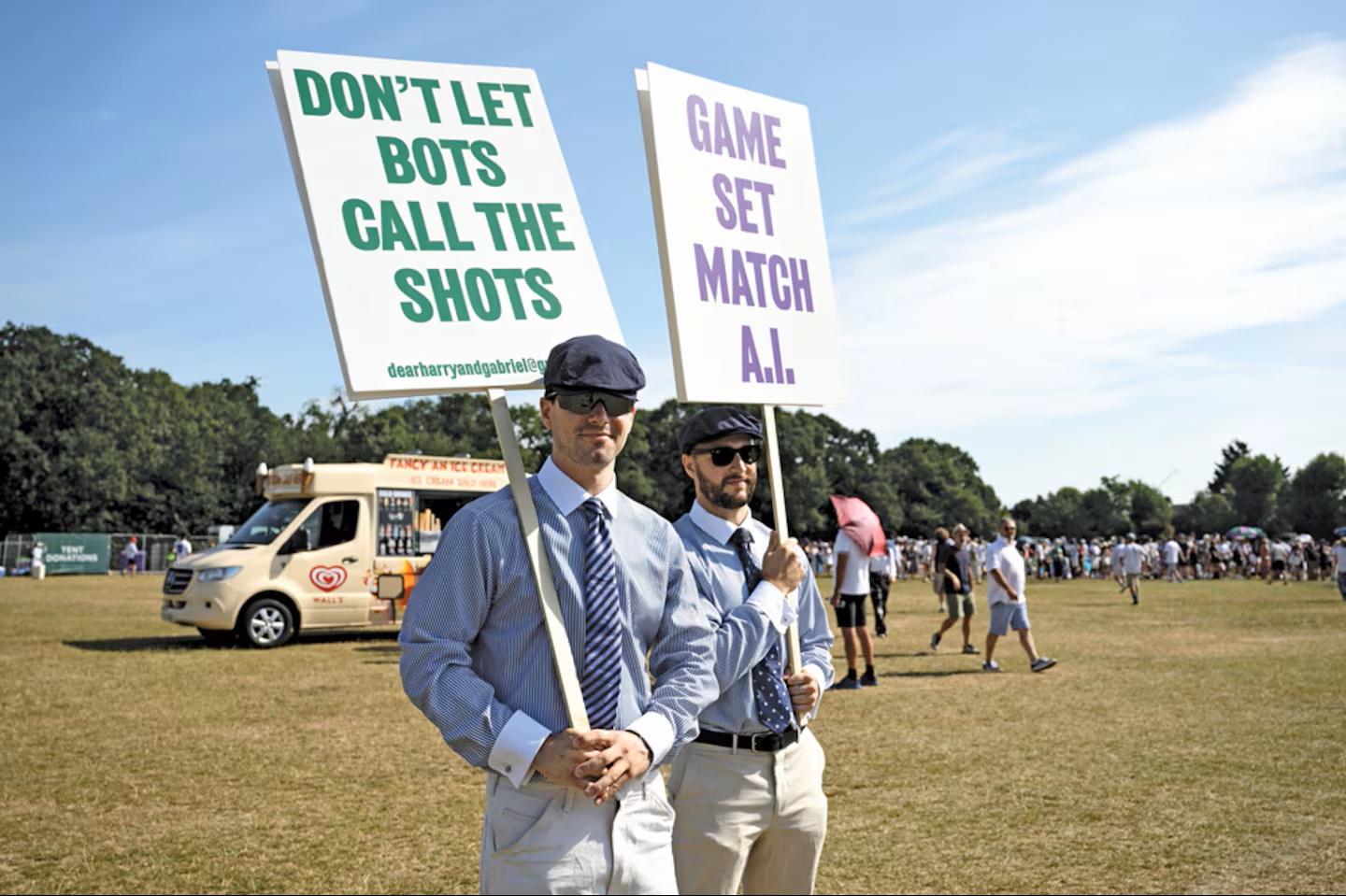 Protestors decried Wimbledon’s move to fully electronic line calls. (Photo: Getty Images)