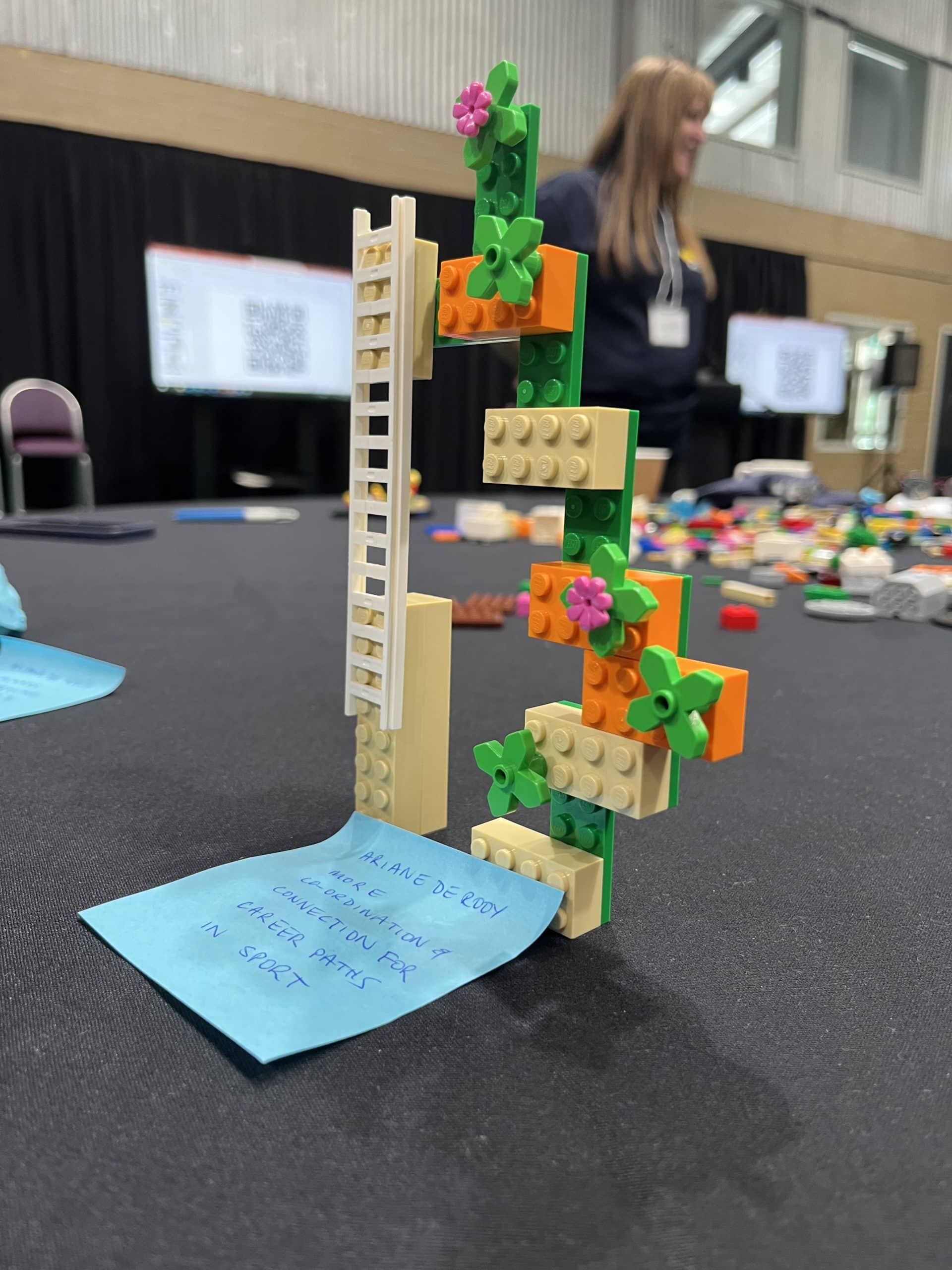 LÓC: I learned from [Lego Serious Play expert] Michael Fearne – who trained me – there are sound scientific principles underpinning the use of Lego in engaging people, changing the conversation and solving complex problems. The way building something with your hands unlocks knowledge you didn’t know you had. There is also the joy and productivity of getting into a flow experience. There is safety in talking about issues through a model rather than the usual business/power dynamic. For example, we might have an idea and we try to make sense of it, but when you put something physical out into the world and you and I can look at it together and say ‘well, what do you see? What do I see? Let’s turn it around and look at it from another side’. We see very different things. And then the flow piece is fascinating with sportspeople because of the connection between the hand and the brain. When you’ve got a big pile of Lego in front of you and your hands are like another search engine for your brain. So you start pulling out stuff that you didn’t even know was there. With my HP hat on – in simple terms, it works!