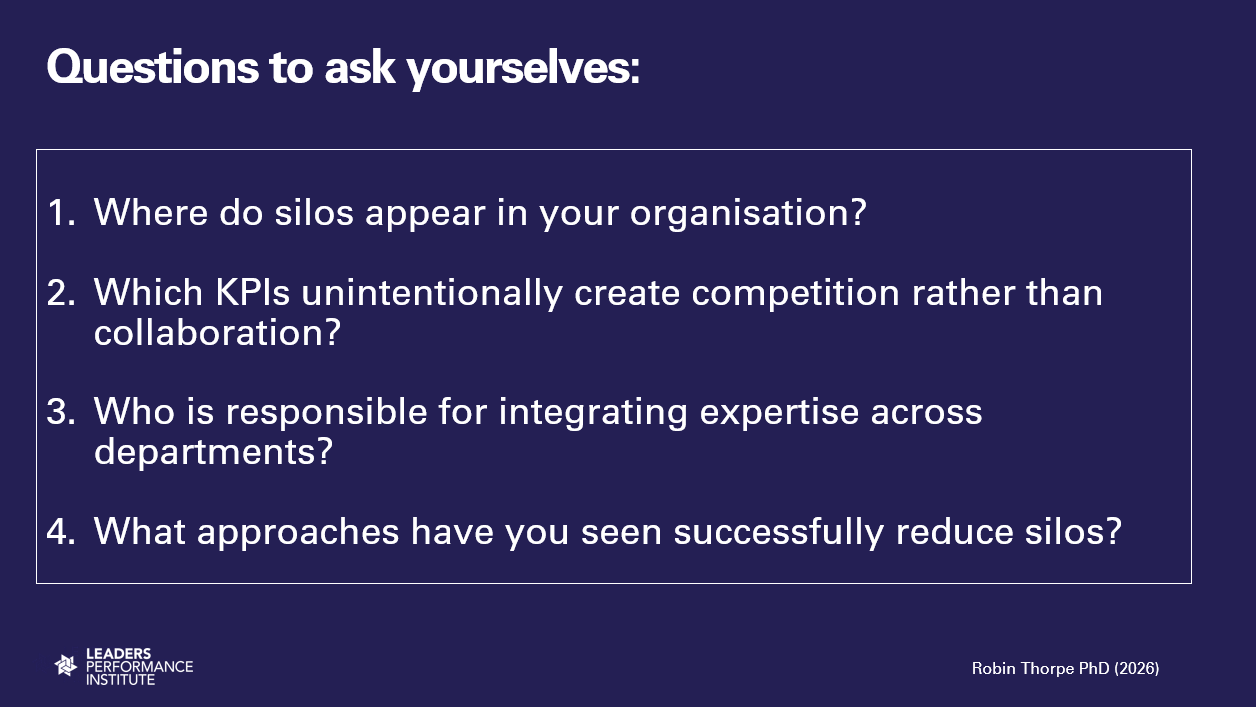 That is according to Leaders Performance Adviser Dr Robin Thorpe, who led a virtual roundtable for Leaders Performance Institute members on the question of silos.