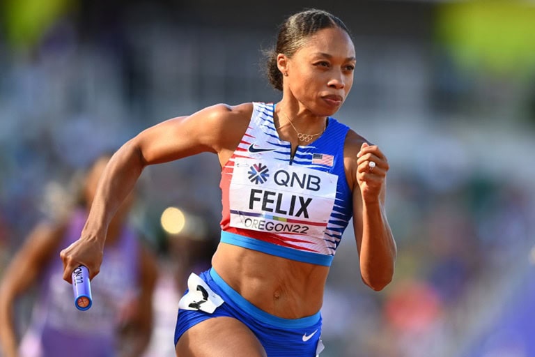 The Los Angeles native competed in the 100, 200 and 400 meters, with an individual gold at the 2012 London Games in the 200. Felix also won 21 medals in the world championships before retiring at the end of 2022.